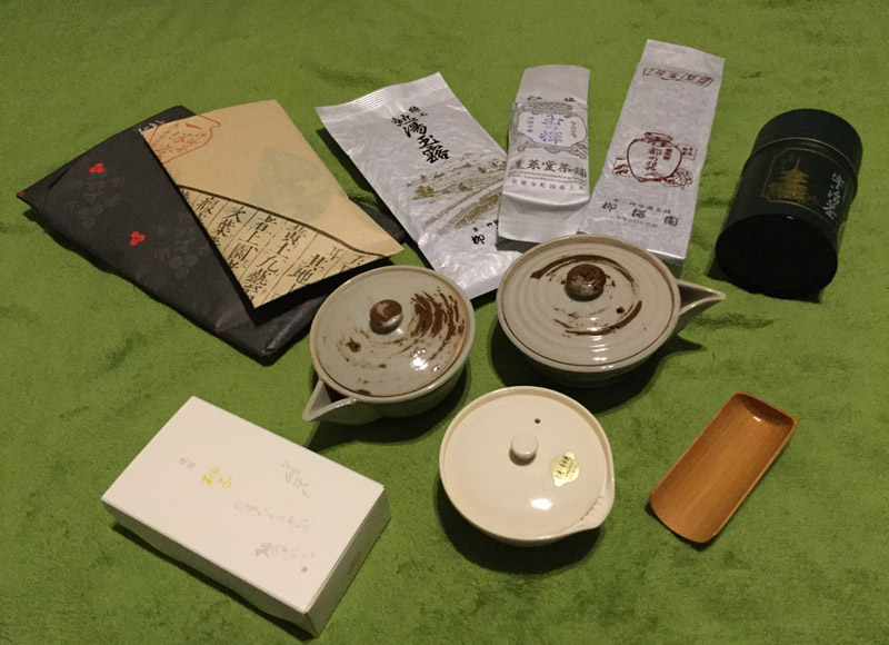 - Sencha, Kabuse, Gyokuro, 3 ručne vyrábané čajníky Kyoto, sladkosti Kohaku = 18 000 jenov = 3 600 Kč